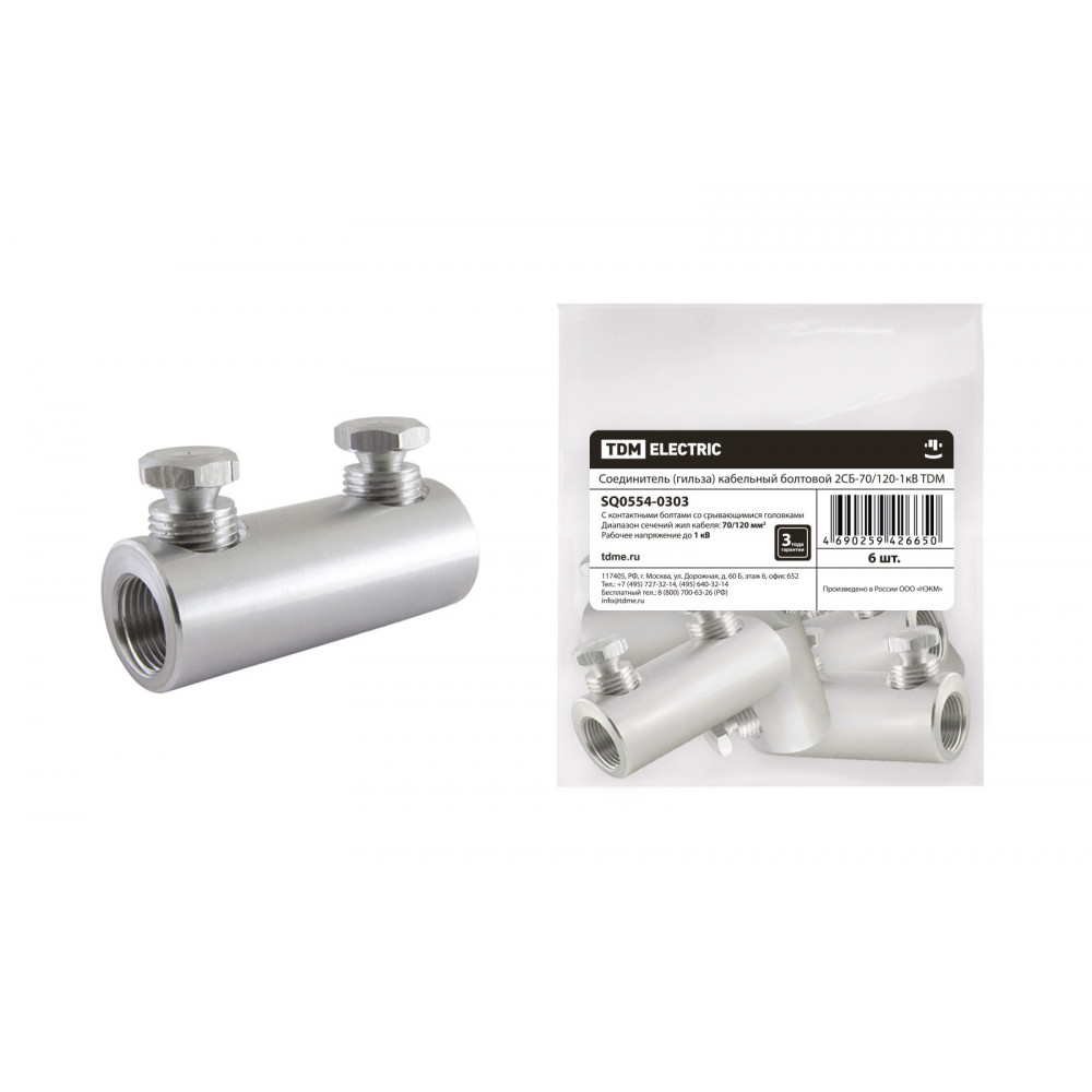 Технические характеристики Соединитель (гильза) кабельный болтовой 2СБ-70/120-1кВ TDM