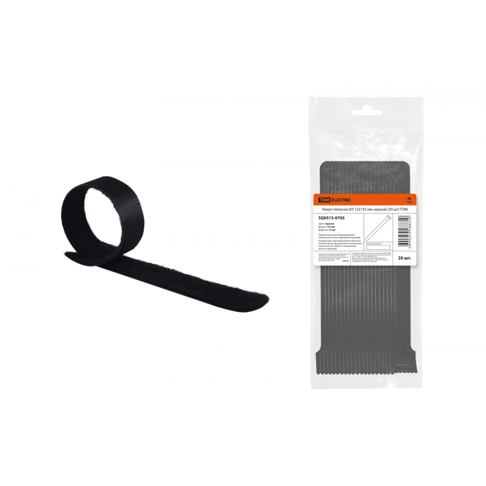 Хомут-липучка ХЛ 12х135 мм черный (20 шт) TDM