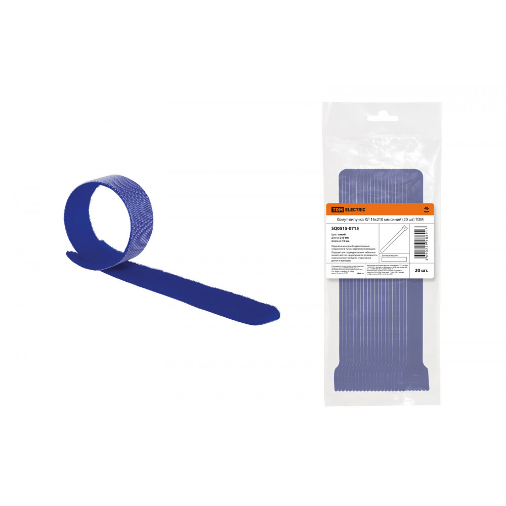 Хомут-липучка ХЛ 16х210 мм синий (20 шт) TDM