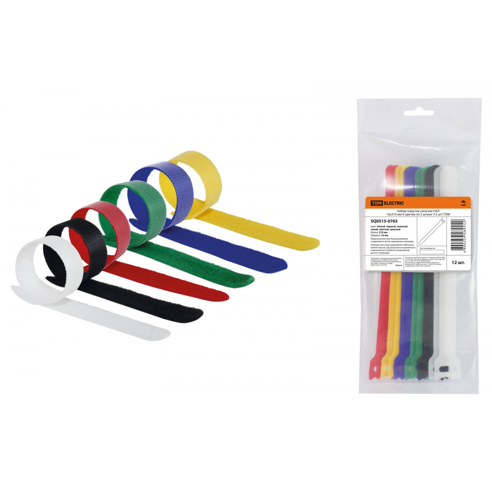 Набор хомутов-липучек НХЛ 16х310 мм 6 цветов по 2 штуки (12 шт) TDM