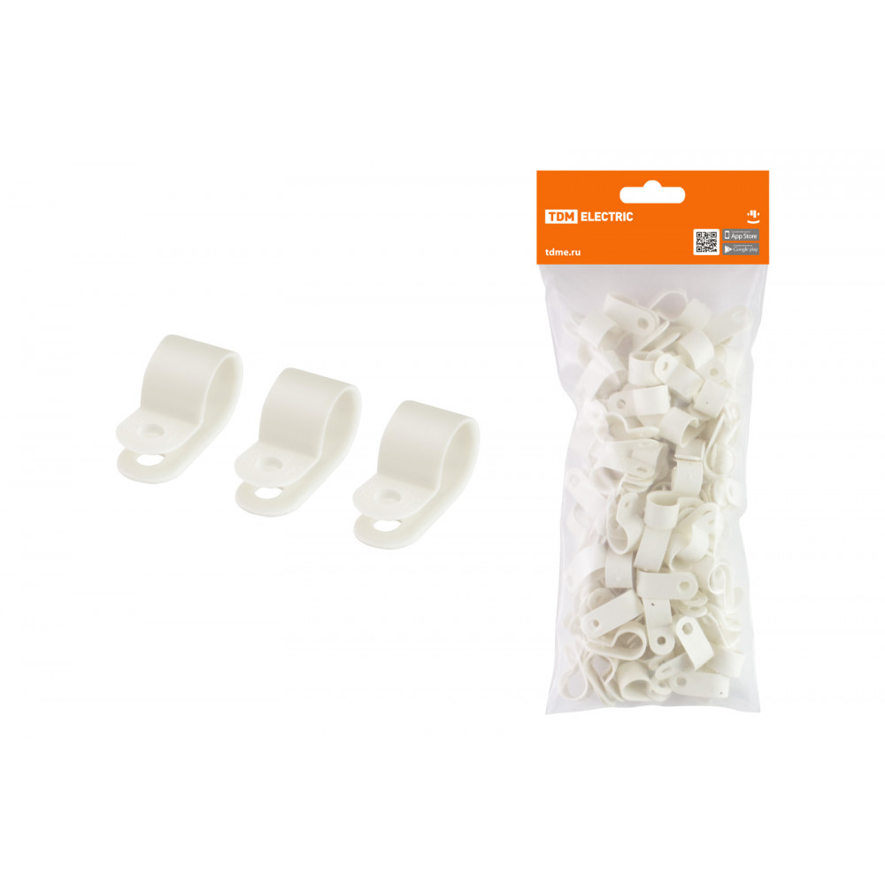 Скоба нейлоновая крепежная СКН-16 белая (100 шт) TDM