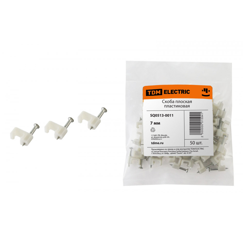 Скоба 7мм плоская пластиковая (белая) (50шт) TDM