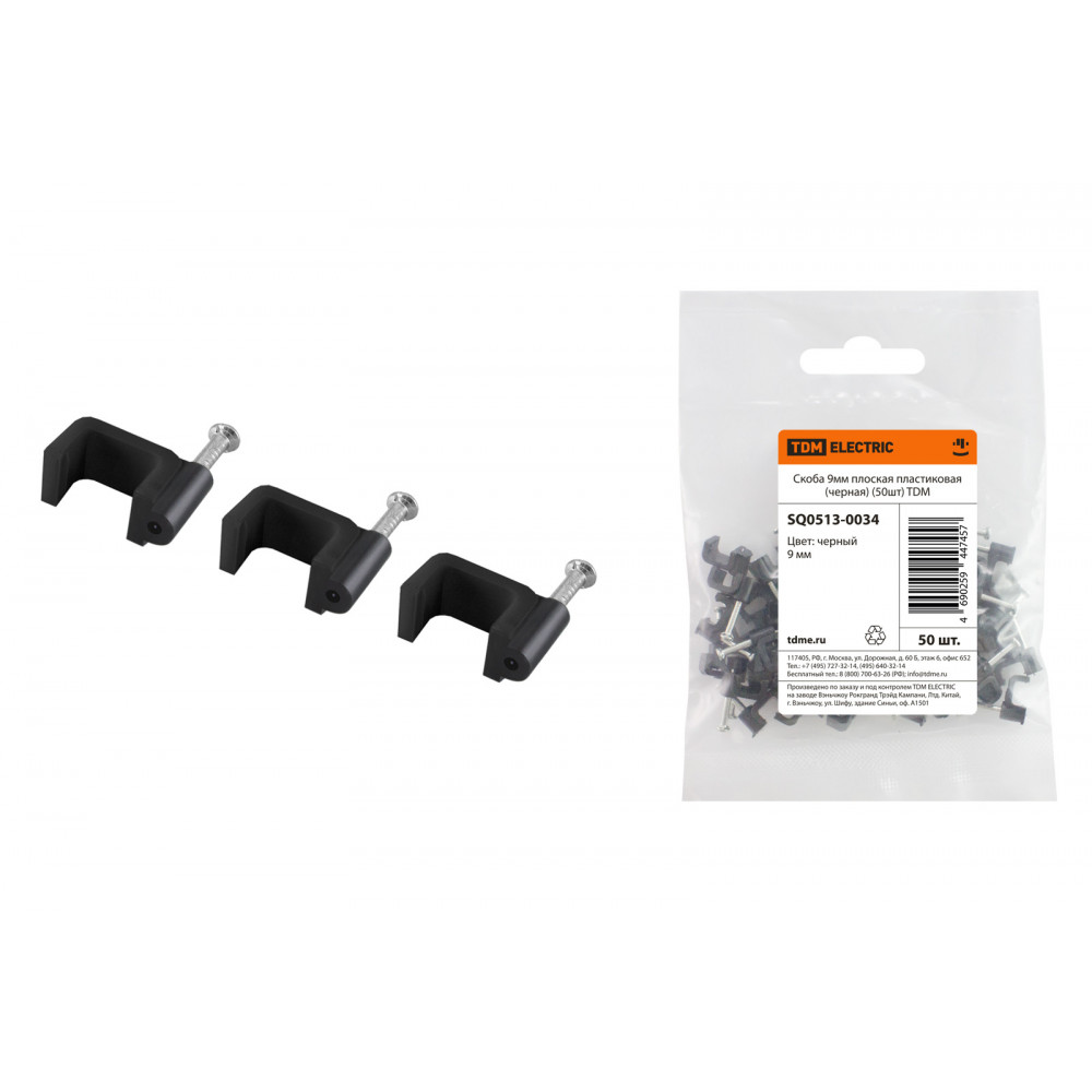 Технические характеристики Скоба 9мм плоская пластиковая (черная) (50шт) TDM