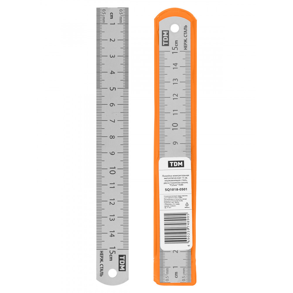 Технические характеристики Линейка измерительная металлическая 15 см, нержавеющая сталь, двухсторонняя шкала, "Рубин" TDM