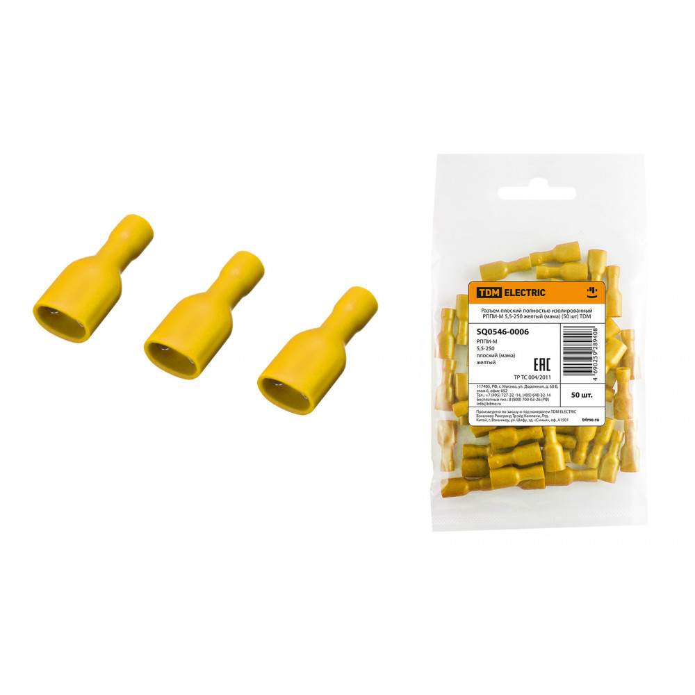 Разъем плоский полностью изолированный РППИ-М 5,5-250 желтый (мама) (50 шт) TDM
