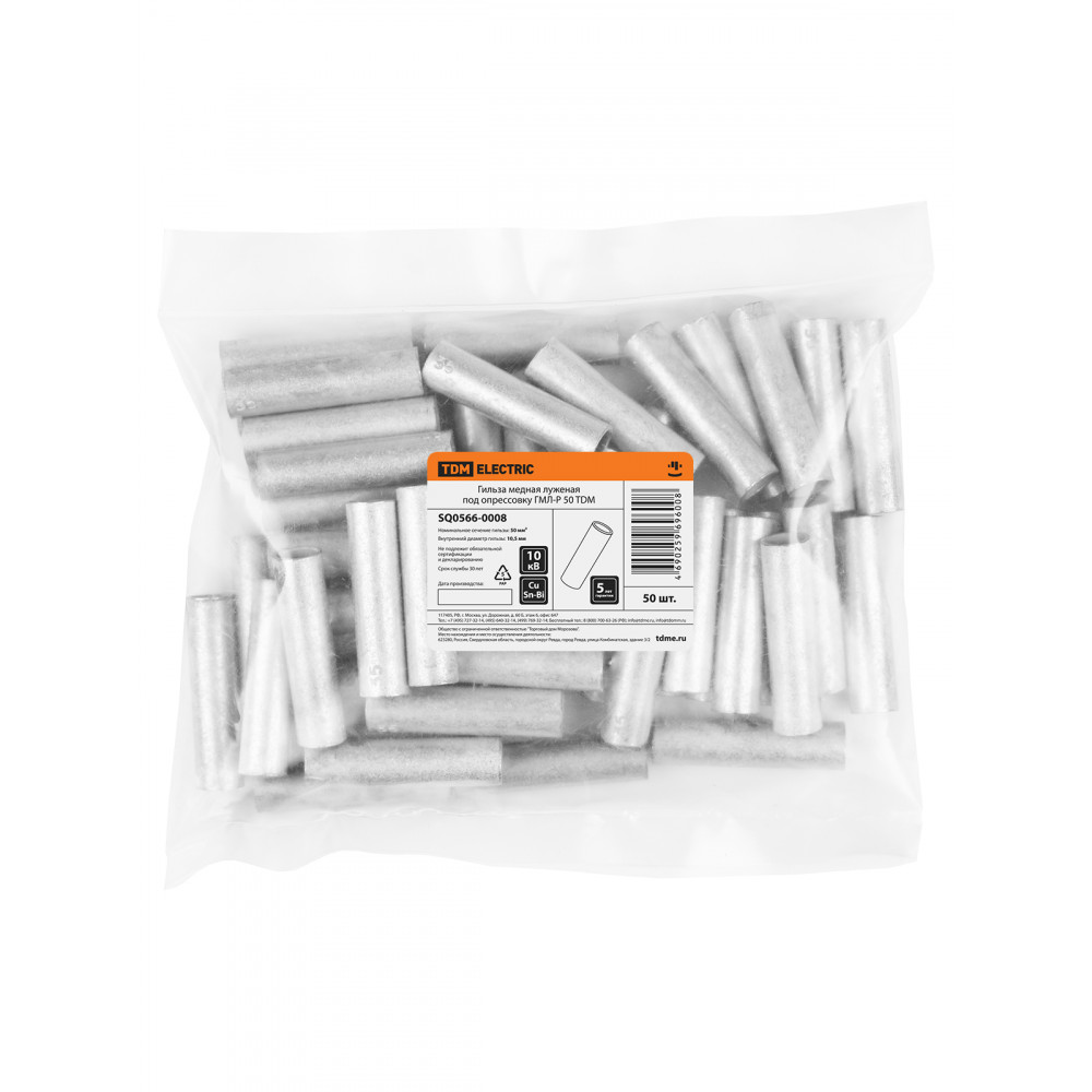 Технические характеристики Гильза медная луженая под опрессовку ГМЛ-Р 50 TDM