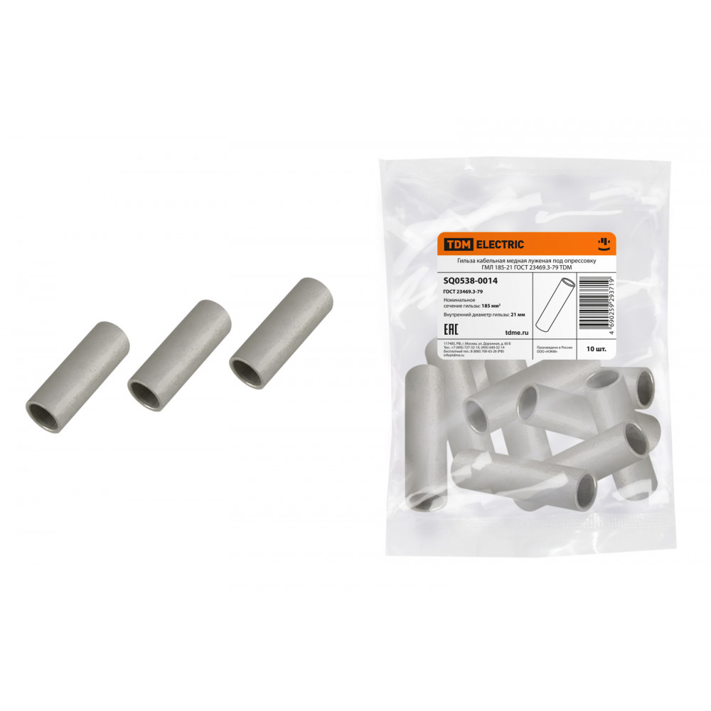 Гильза кабельная медная луженая под опрессовку ГМЛ 185-21 ГОСТ 23469.3-79 TDM