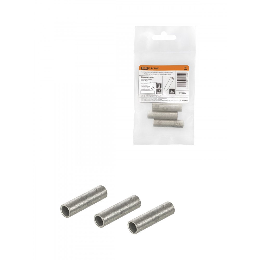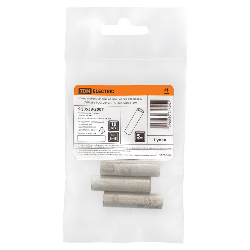 Гильза кабельная медная луженая под опрессовку ГМЛ 25-8 ГОСТ 23469.3-79 (3шт./упак.) TDM