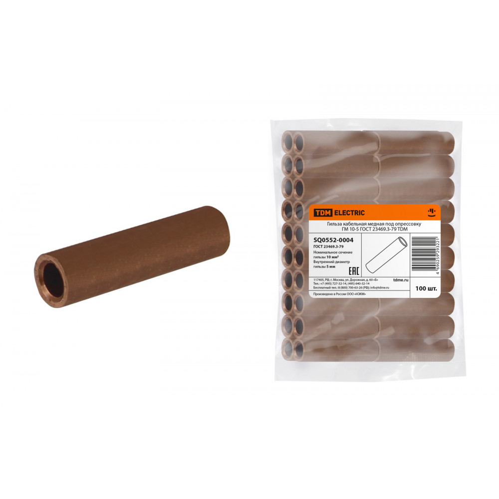 Гильза кабельная медная под опрессовку ГМ 10-5 ГОСТ 23469.3-79 TDM