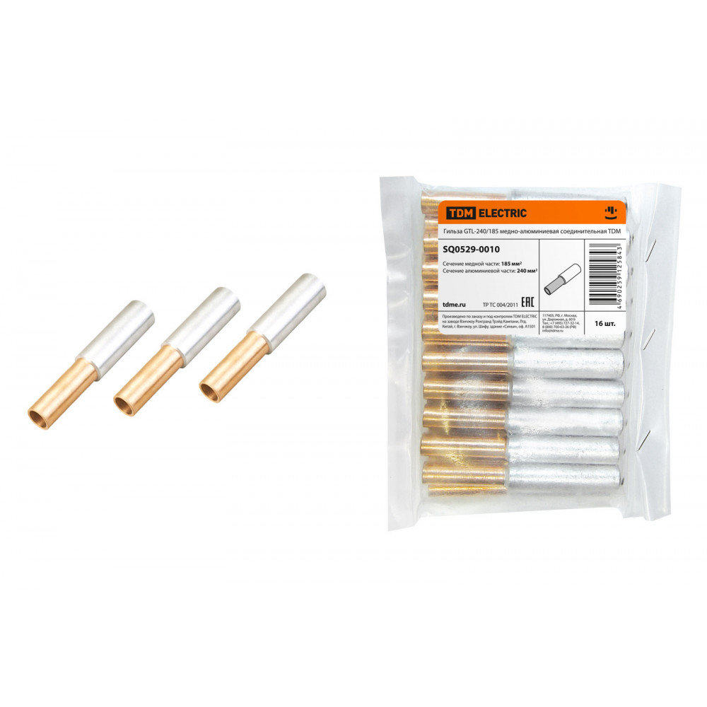 Гильза GTL-240/185 медно-алюминиевая соединительная TDM