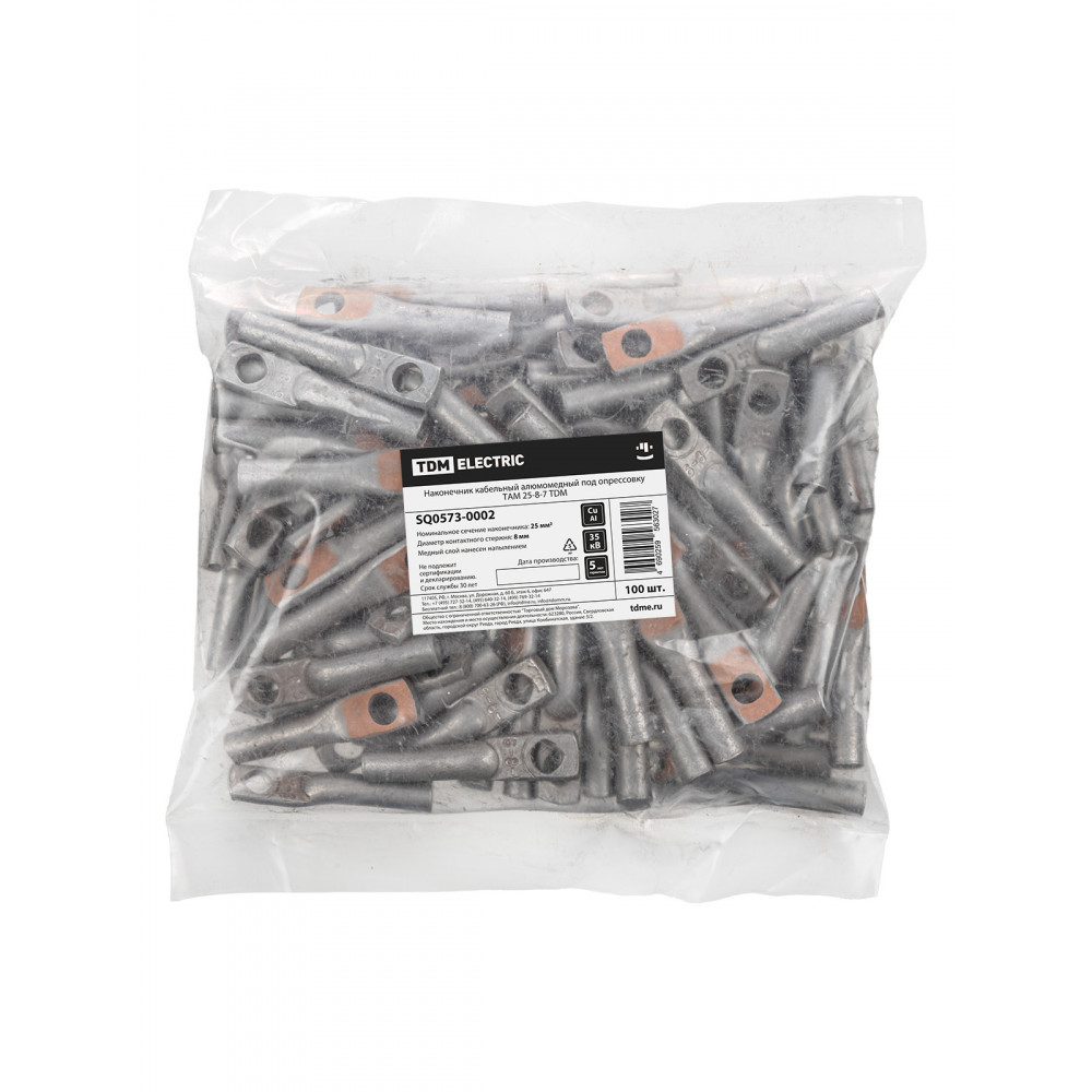 Технические характеристики Наконечник кабельный алюмомедный под опрессовку ТАМ 25-8-7 TDM