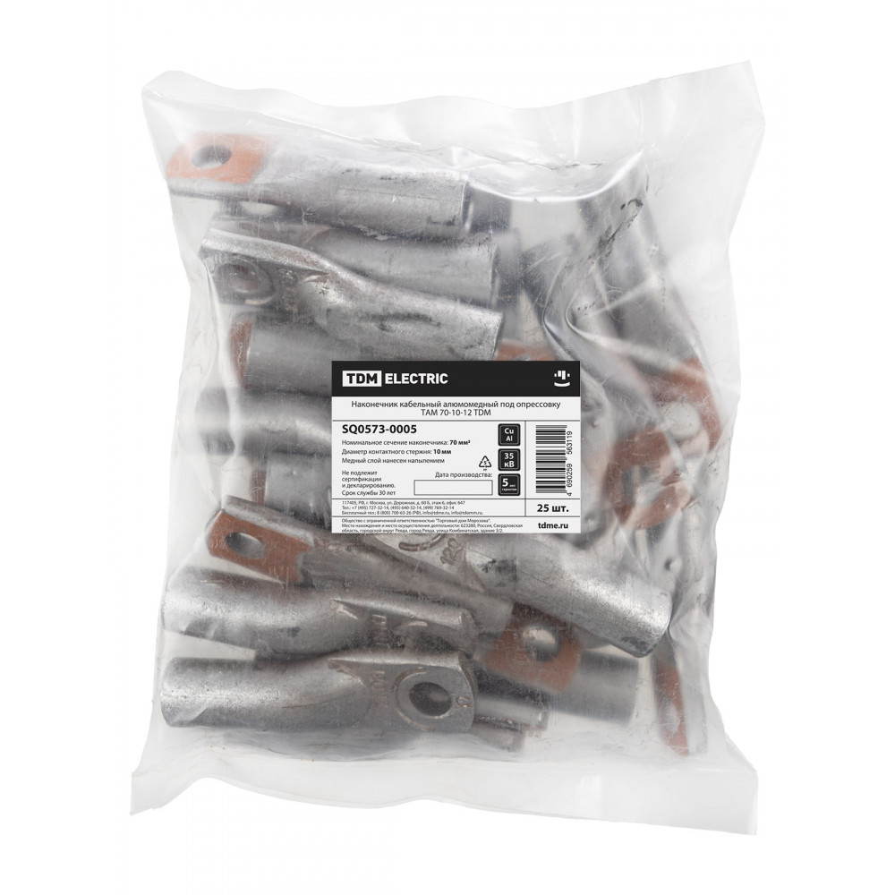 Технические характеристики Наконечник кабельный алюмомедный под опрессовку ТАМ 70-10-12 TDM