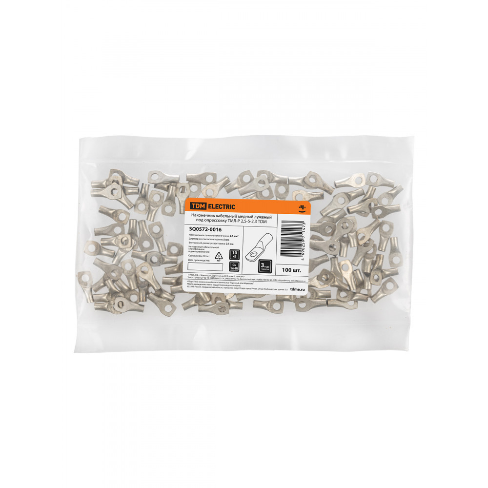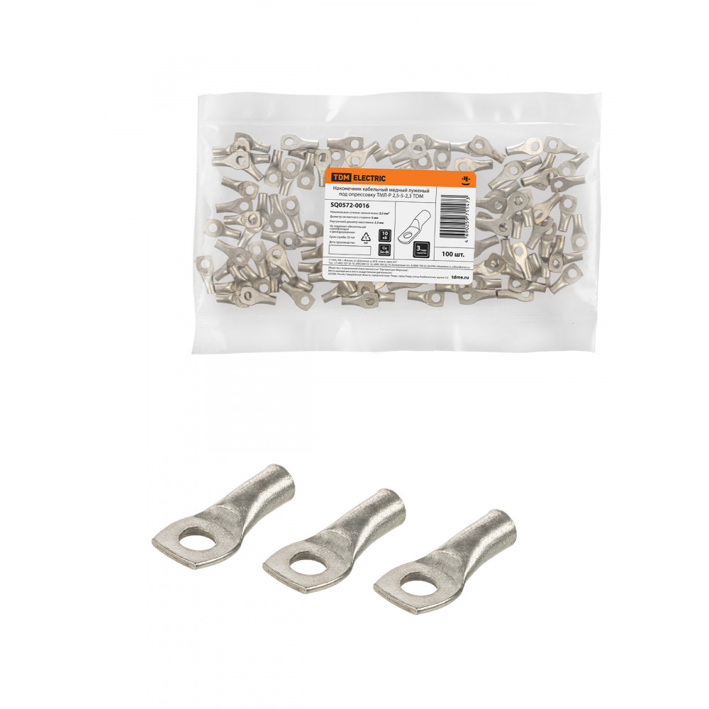 Наконечник кабельный медный луженый под опрессовку ТМЛ-Р 2,5-5-2,3 TDM