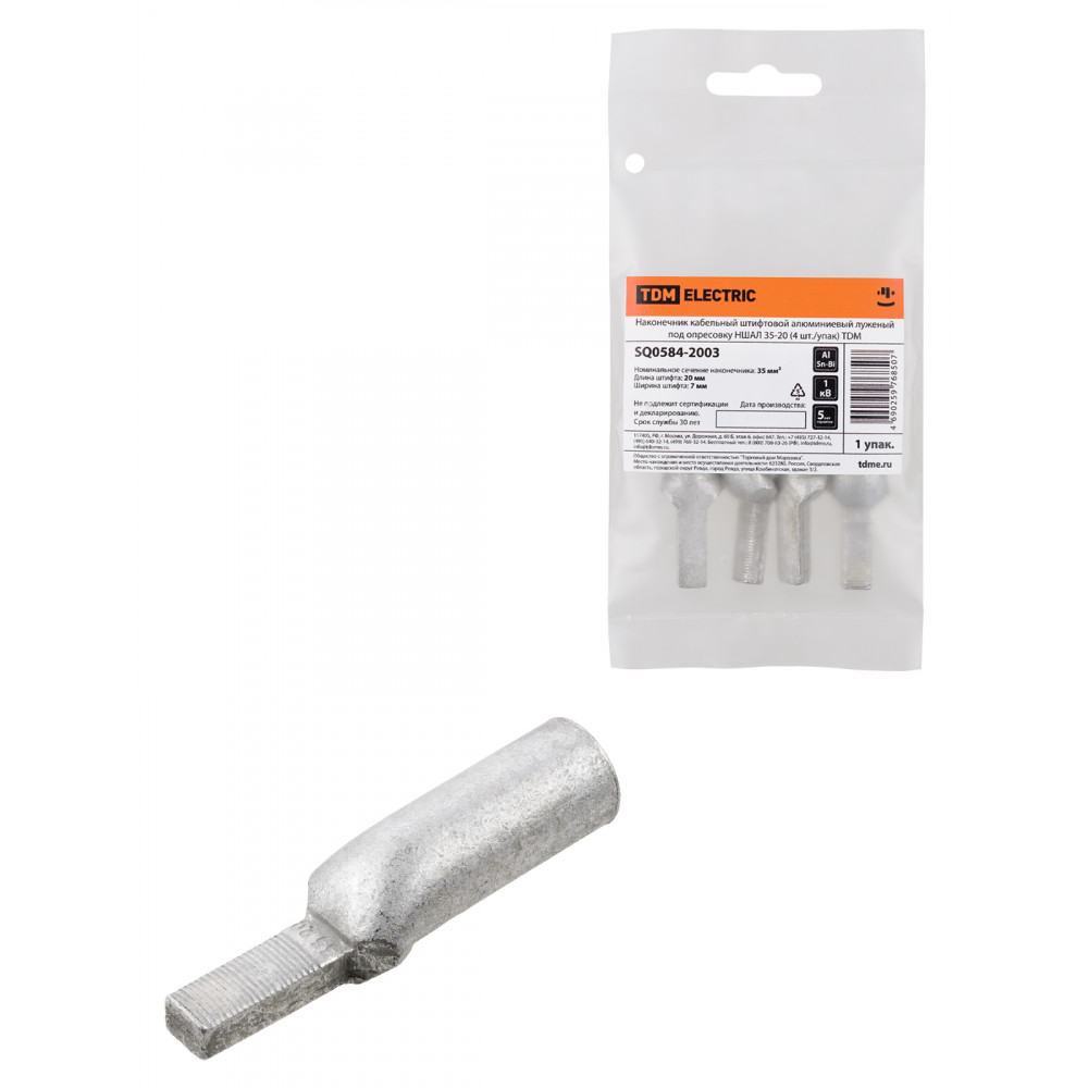 Технические характеристики Наконечник кабельный штифтовой алюминиевый луженый под опресовку НШАЛ 35-20 (4 шт./упак) TDM