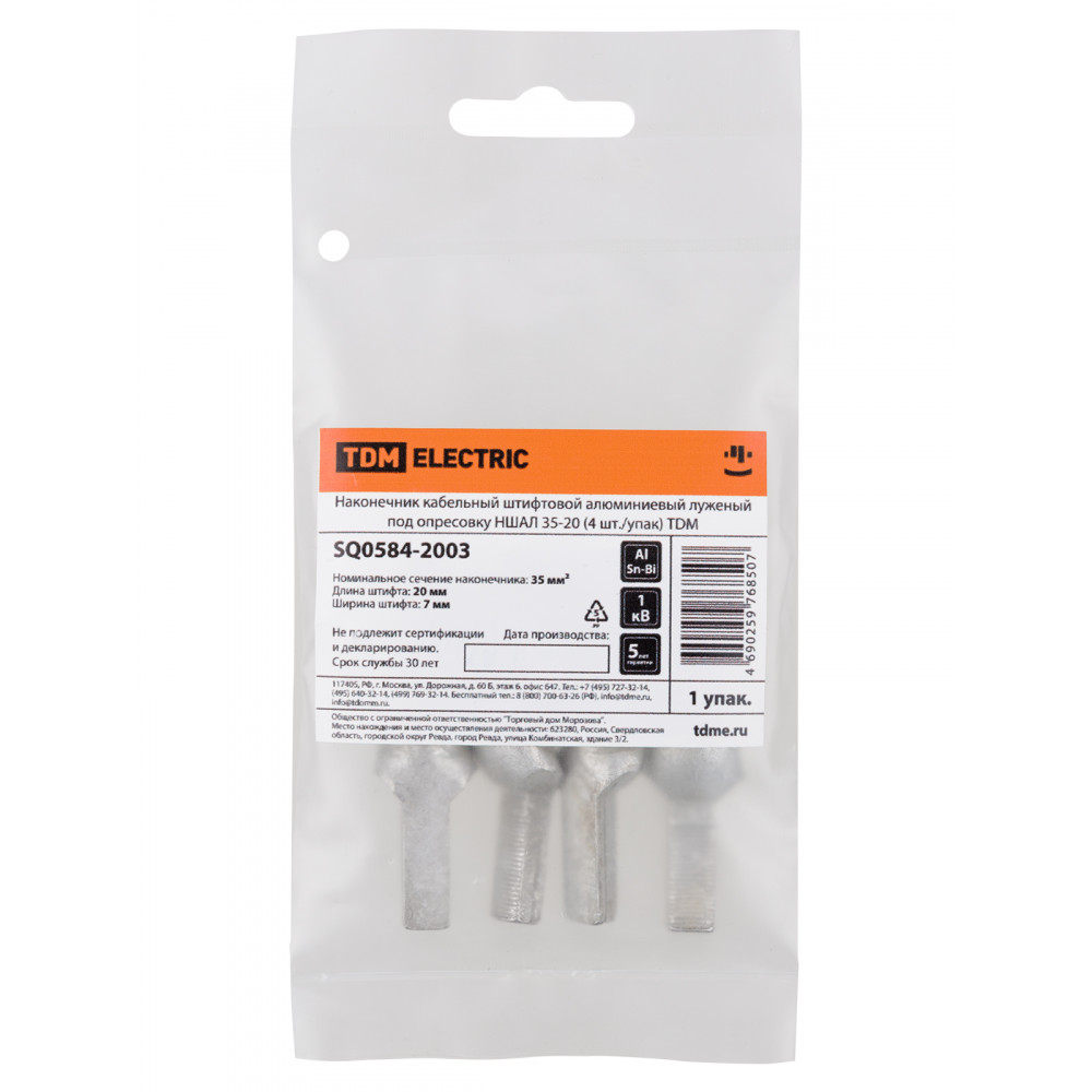 Наконечник кабельный штифтовой алюминиевый луженый под опресовку НШАЛ 35-20 (4 шт./упак) TDM