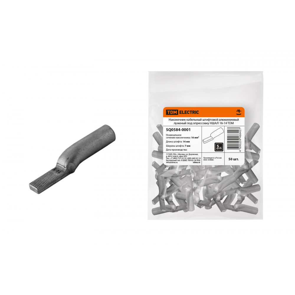 Технические характеристики Наконечник кабельный штифтовой алюминиевый луженый под опрессовку НШАЛ 16-14 TDM