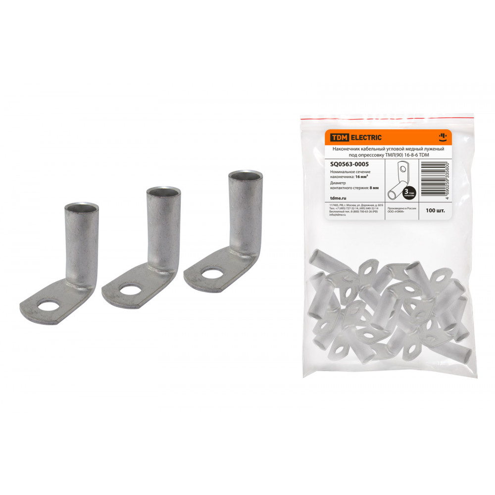 Технические характеристики Наконечник кабельный угловой медный луженый под опрессовку ТМЛ(90) 16-8-6 TDM