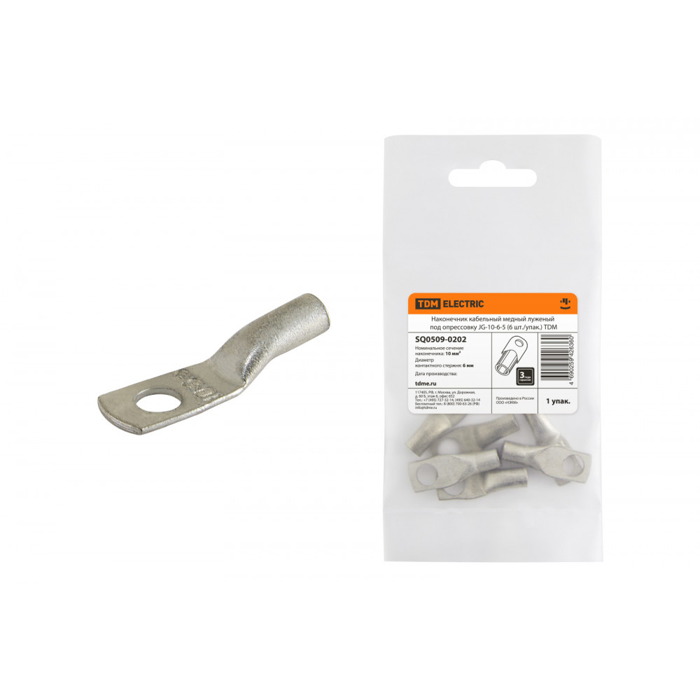 Наконечник кабельный медный луженый под опрессовку JG-10-6-5 (6 шт./упак.) TDM