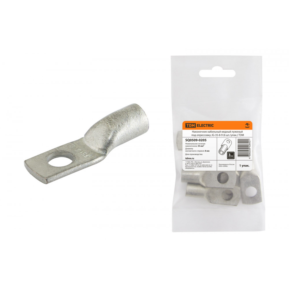 Наконечник кабельный медный луженый под опрессовку JG-35-8-9 (6 шт./упак.) TDM