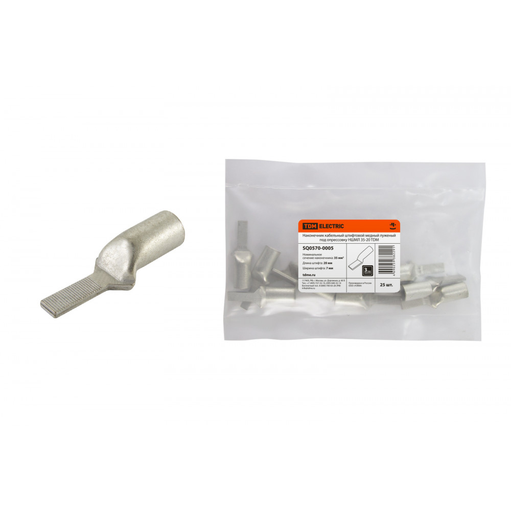 Технические характеристики Наконечник кабельный штифтовой медный луженый под опрессовку НШМЛ 35-7x20 TDM