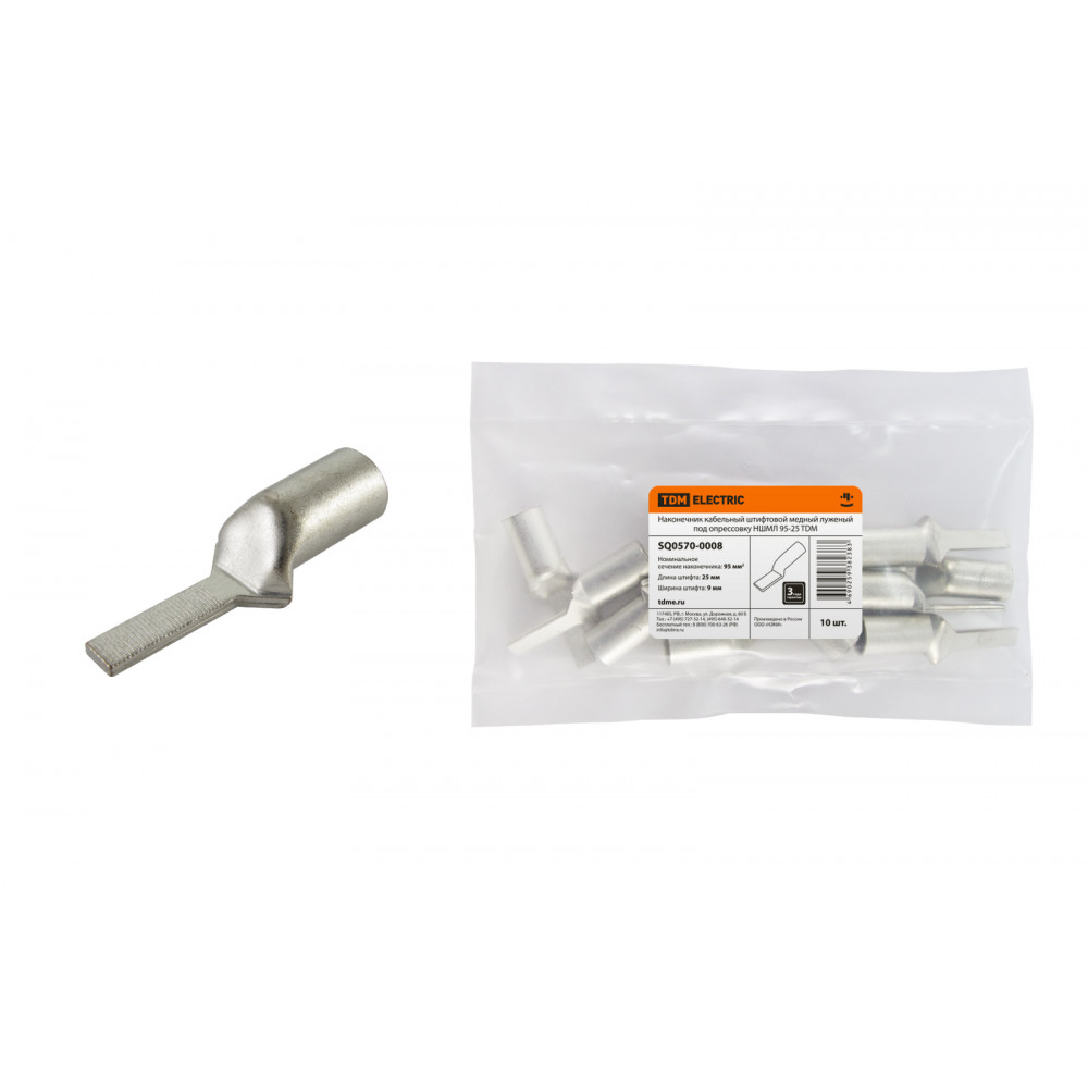Технические характеристики Наконечник кабельный штифтовой медный луженый под опрессовку НШМЛ 95-9x25 TDM
