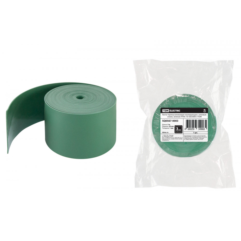 Лента термоусаживаемая изолирующая с клеевым слоем, зеленая ЛТИк-10-50х5000-З TDM
