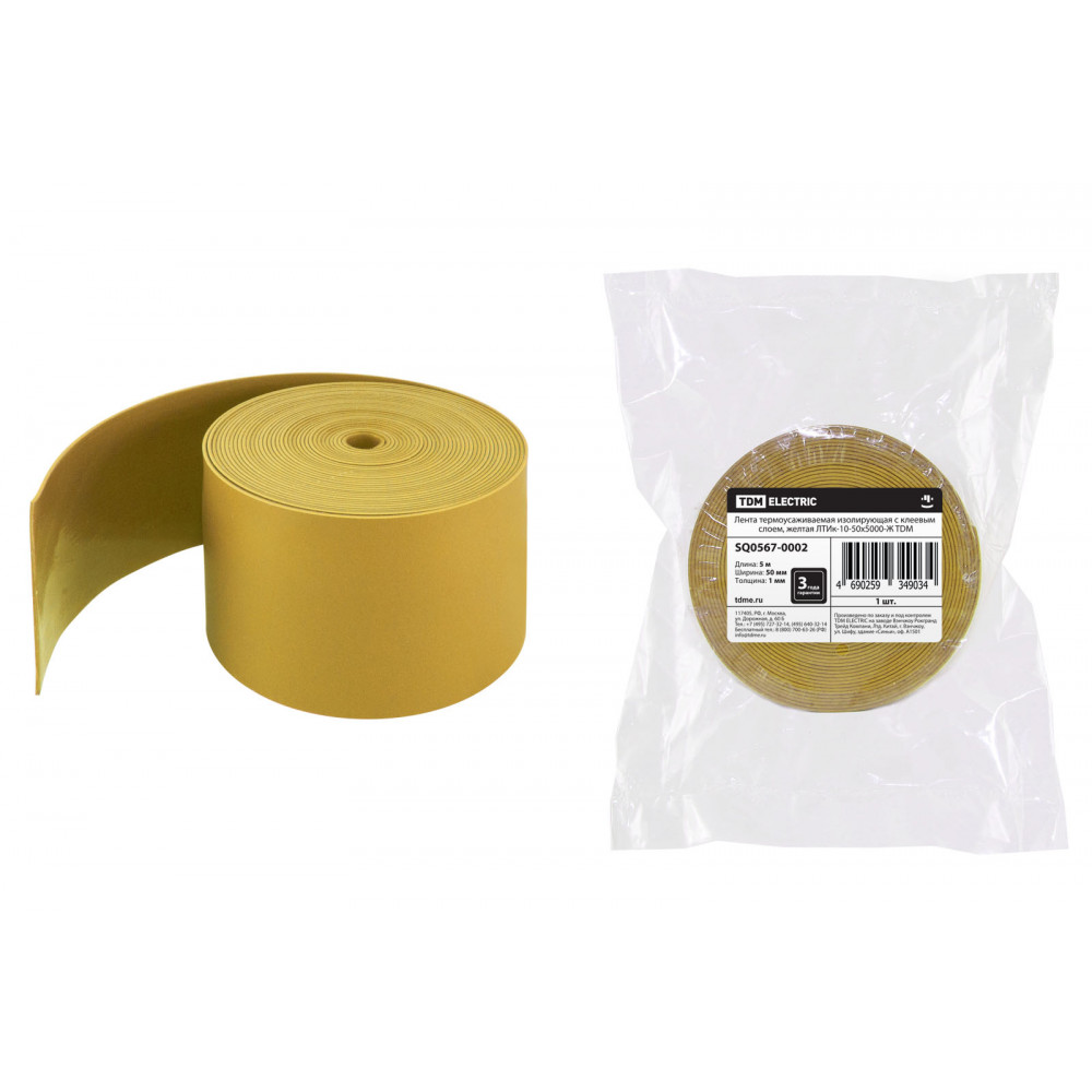 Технические характеристики Лента термоусаживаемая изолирующая с клеевым слоем, желтая ЛТИк-10-50х5000-Ж TDM