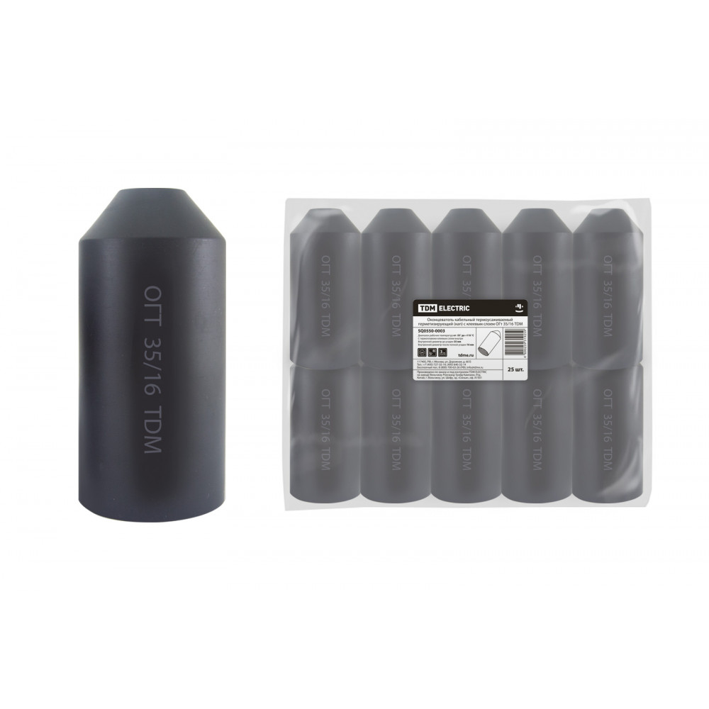 Технические характеристики Оконцеватель кабельный термоусаживаемый герметизирующий (кап) с клеевым слоем ОГт 35/16 TDM