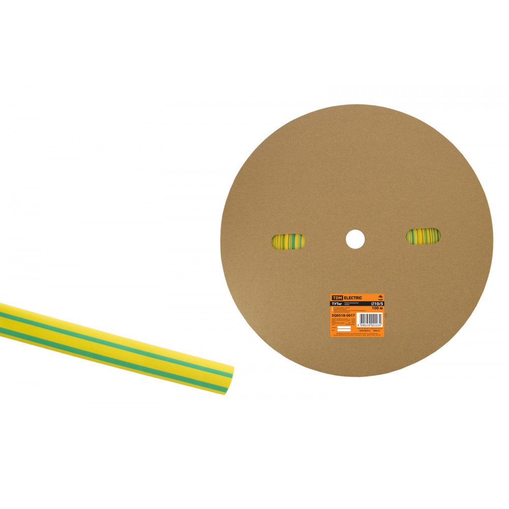 Термоусаживаемая трубка ТУТнг 10/5 желто-зеленая (100 м/ролл) TDM