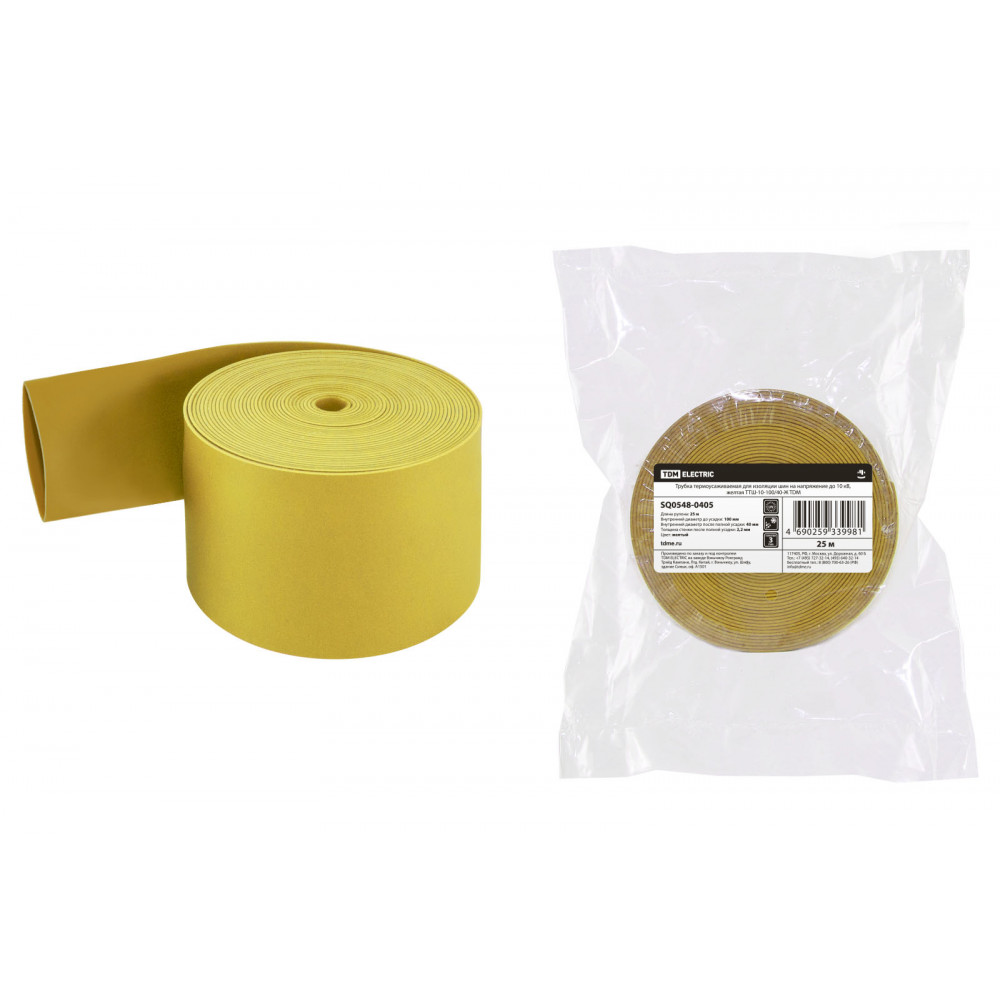 Трубка термоусаживаемая для изоляции шин на напряжение до 10 кВ, желтая ТТШ-10-100/40-Ж TDM