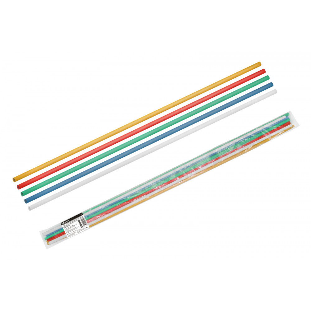 Технические характеристики Трубки термоусаживаемые не распространяющие горение, с клеевым слоем, набор 5 цветов (красный, желтый, зеленый, синий, белый) по 2 шт., длиной 1,0 м ТТкНГ(3:1)-6,4/2,0 TDM