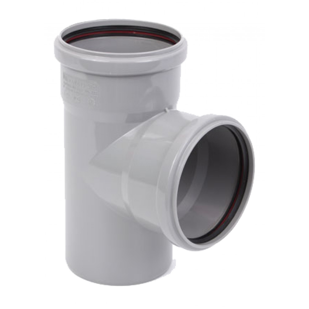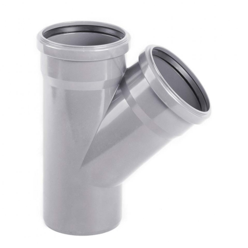 Тройник НПВХ используется для устройства разветвлений под углом сетей канализации. Имеет раструб под соединение с помощью резинового уплотнительного кольца с двух сторон и гладкий конец с другой. С помощью переходных тройников можно стыковать трубы с разным диаметром.