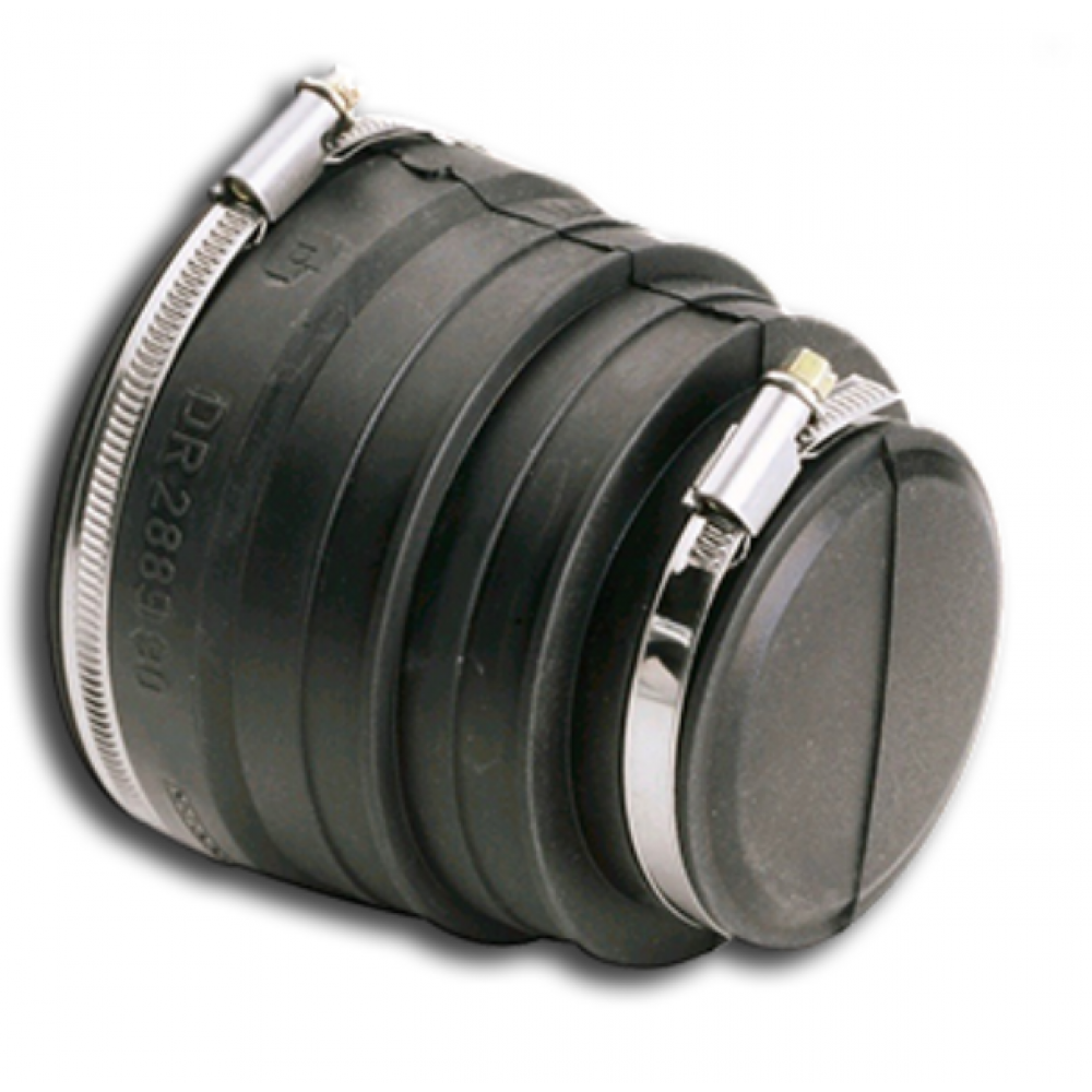 Манжета из резины EPDM с двумя червячными хомутами в комплекте. Применяется для соединения труб из различных материалов в диапазоне наружных диаметров 110 – 72 мм