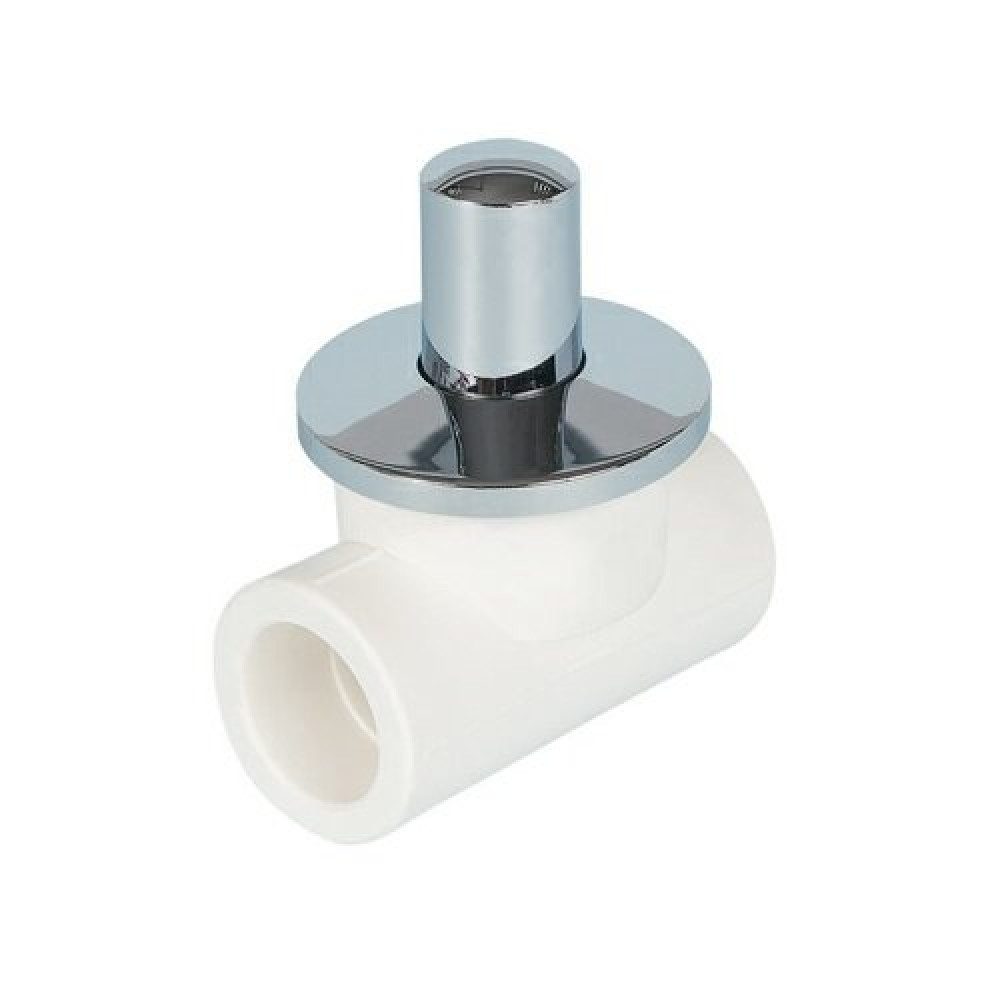 Клапан (вентиль) PPR запорный PN25 белый хромированный внутренняя пайка