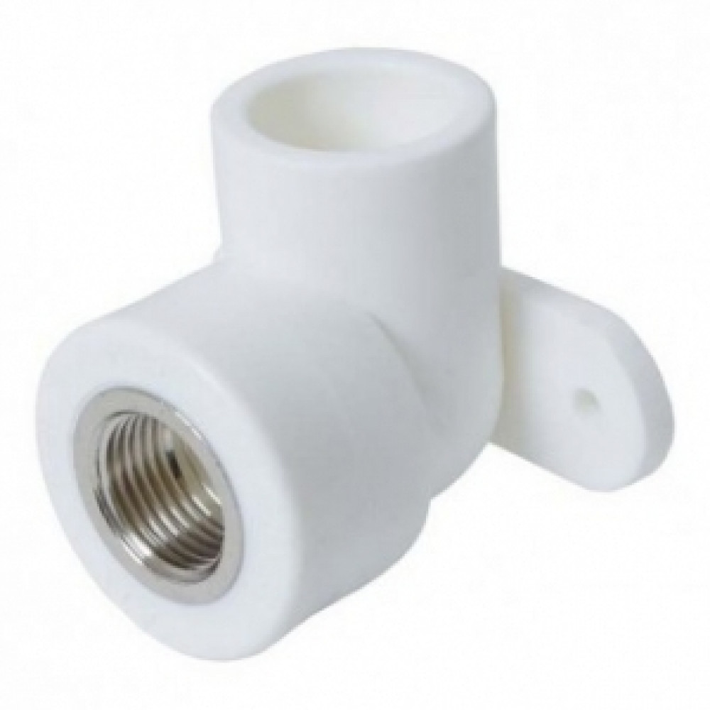 Угольник полипропиленовый PP-R комбинированный с креплением, внутренняя резьба предназначен для соединения полипропиленовой трубы и компонента системы с наружной резьбой под углом 90° при монтаже внутренних систем холодного, горячего водоснабжения и отопления. Срок хранения 3 года.