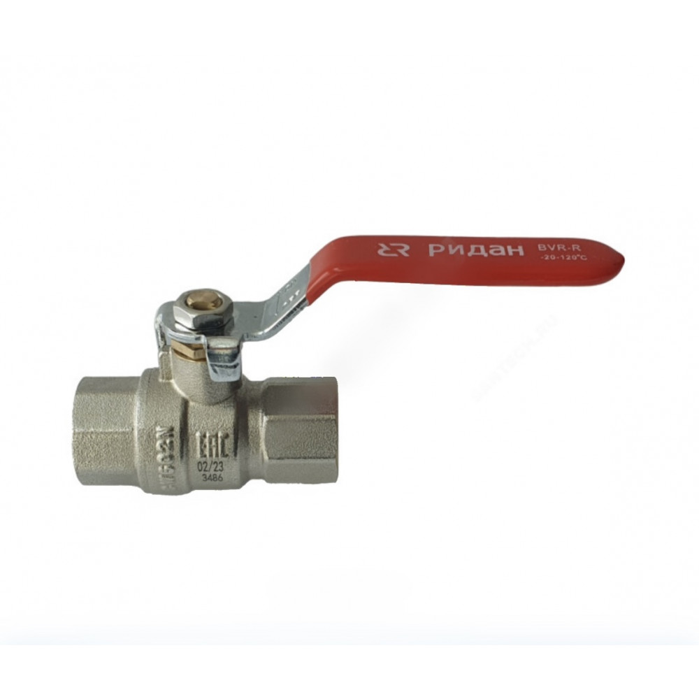 Кран шаровой латунь BVR-R ВР полнопроходной рычаг красный Ридан. Рабочая среда: вода, водно-гликолевая смесь. Резьба: ISO 228/1. ГОСТ-59553-2021.