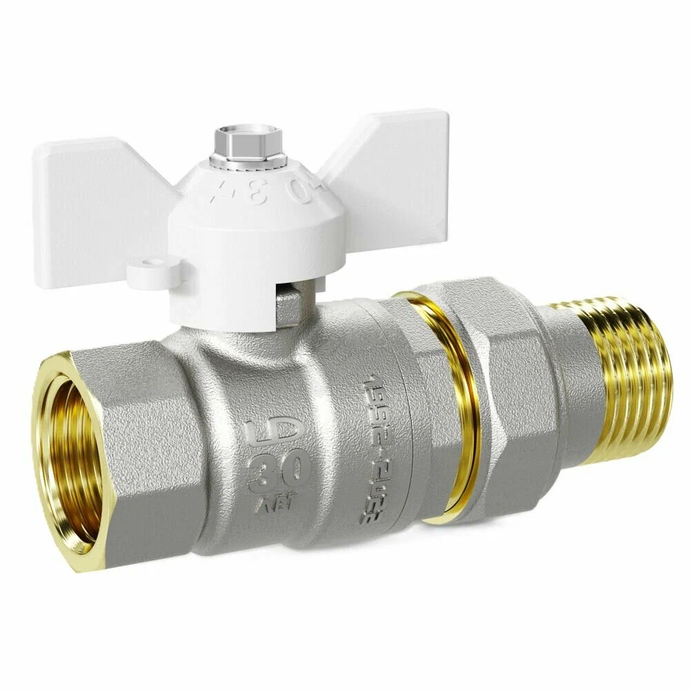 Кран шаровой латунь никель Pride ВР/"американка" бабочка белая LD