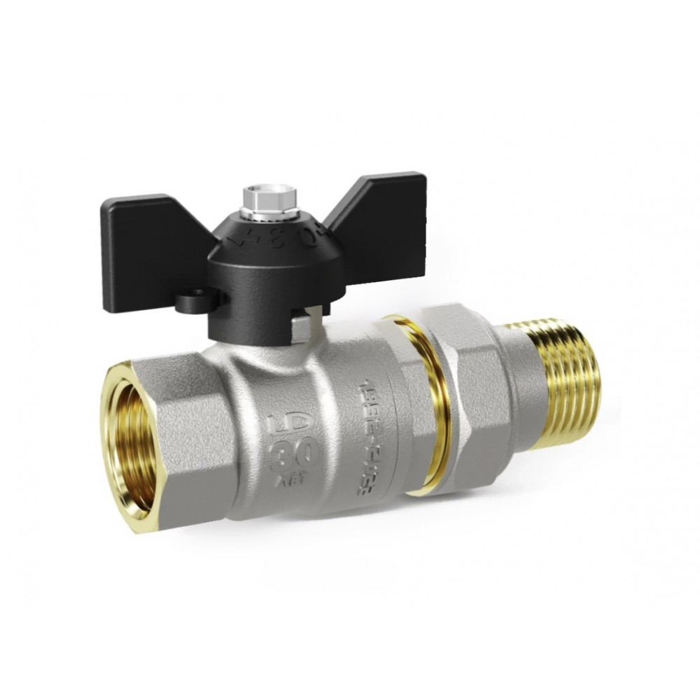 Кран шаровой латунь никель Pride ВР/"американка" бабочка черная LD