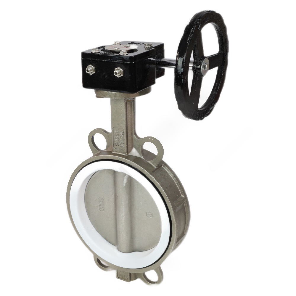 Затвор дисковый поворотный сталь нержавеющая межфл диск нерж манжета PTFE с редуктором 2040R Benarmo