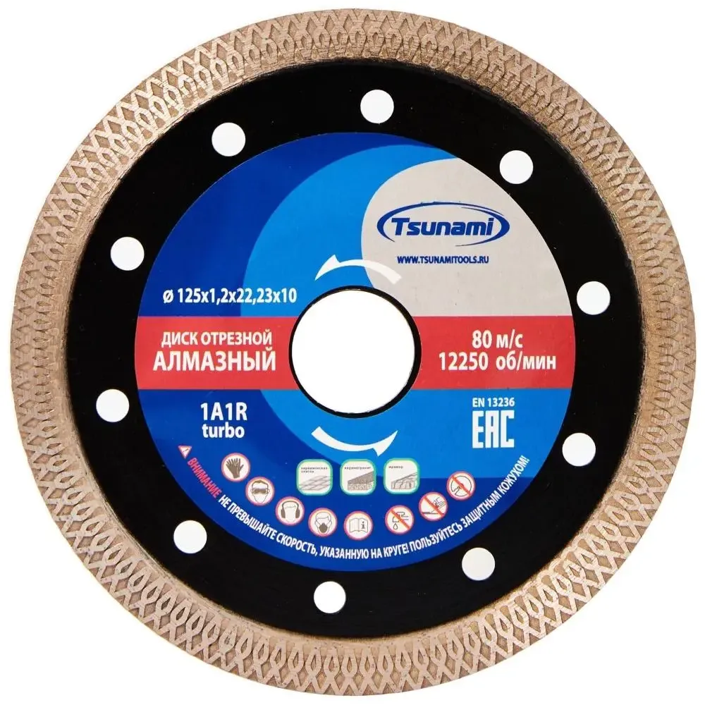 125X1,2Х22,23Х10 ТОНКИЙ ГОРЯЧЕГО ПРЕССОВАНИЯ ДИСК АЛМАЗНЫЙ ПО КЕРАМОГРАНИТУ TSUNAMI