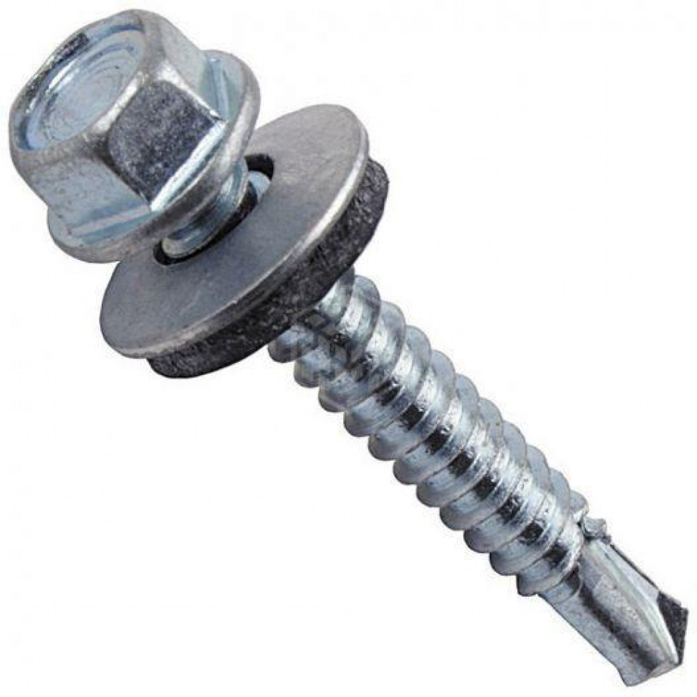 Саморез для крепления кровельных материалов к металлическим профилям (с шайбой и резиновой прокладкой EPDM) Наконечник-сверло обеспечивает просверливание металла толщиной 5 мм