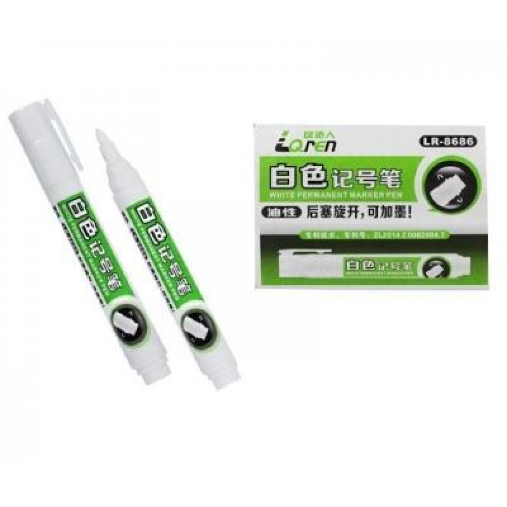 МАРКЕР БЕЛЫЙ ПЕРМАНЕНТНЫЙ (ВОДОСТОЙКИЙ/СВЕТОСТОЙКИЙ) ТОЛЩ 3 ММ LR-8686