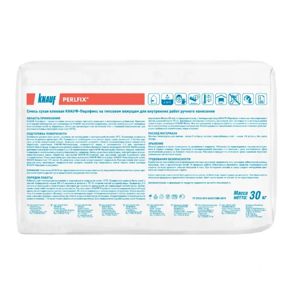 Технические характеристики Клей гипсовый Knauf Перлфикс 30 кг