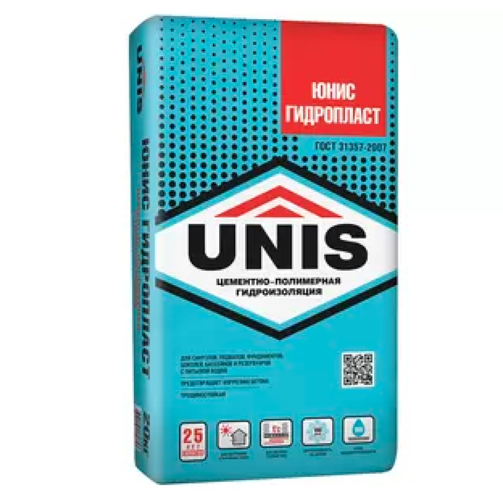 Технические характеристики Гидроизоляция UNIS Гидропласт 20 кг