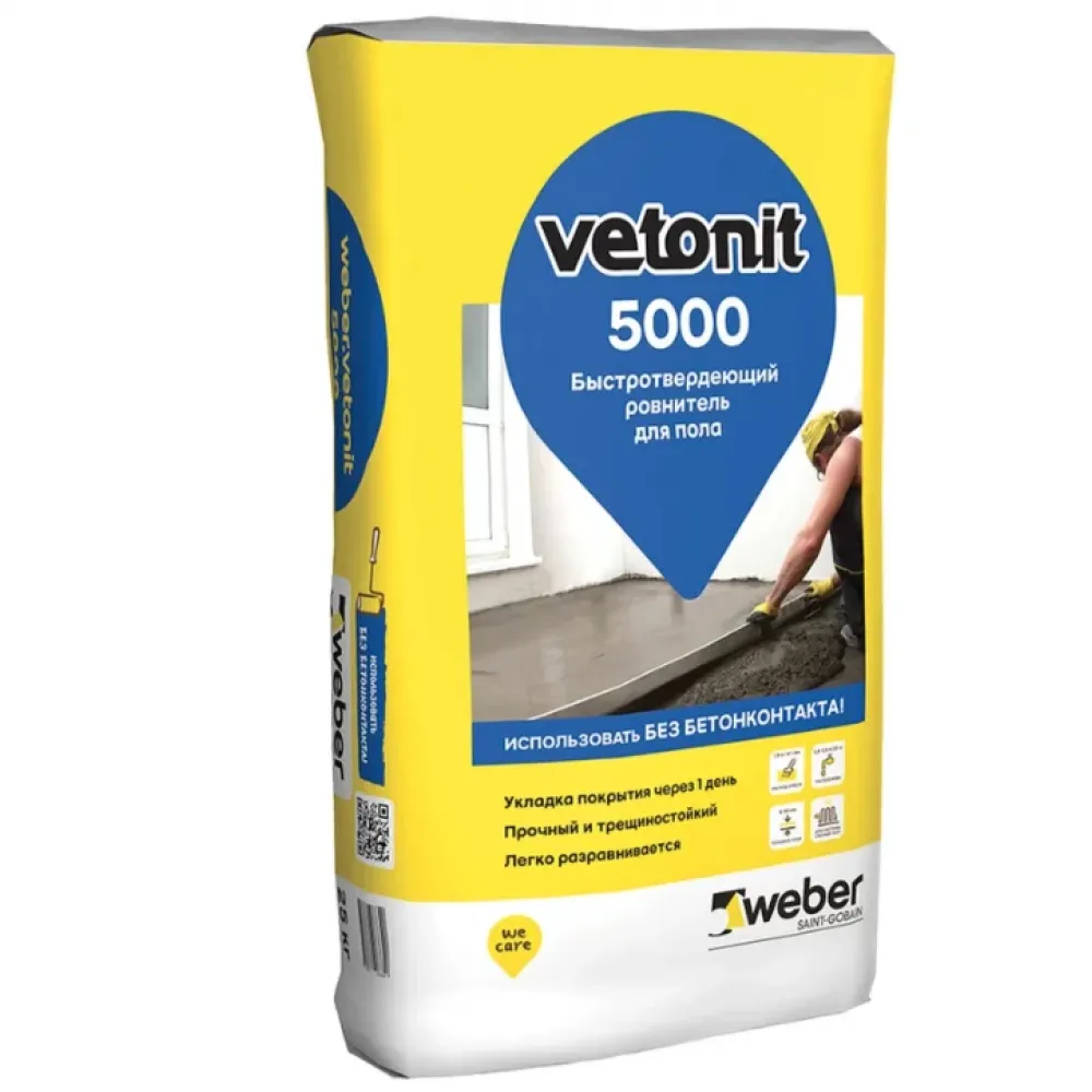 Технические характеристики Ровнитель (стяжка пола) первичный Weber.vetonit 5000 быстротвердеющий 25 кг