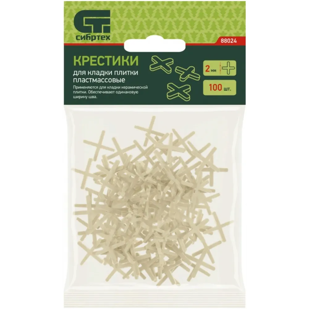 Технические характеристики Крестики Сибртех 2мм для плитки - 100шт в упак