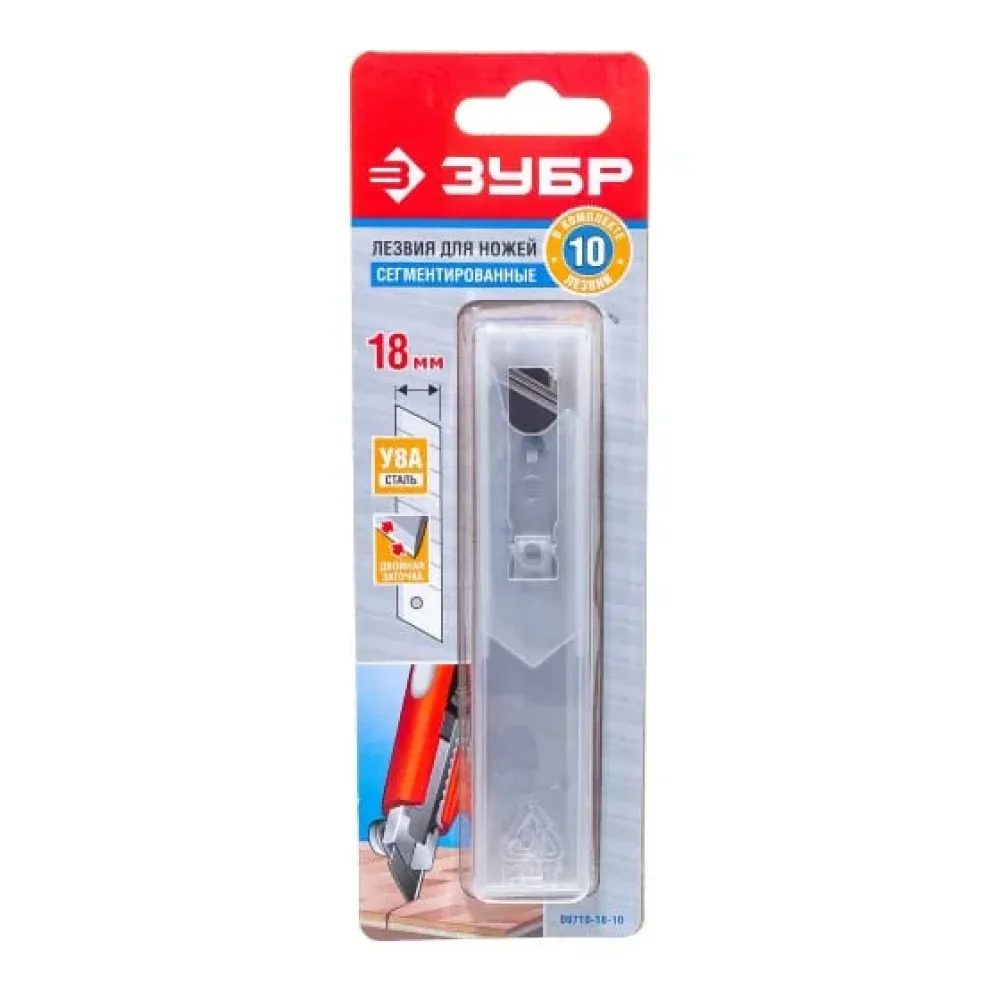 Лезвия 18 мм ЗУБР особоострые, 8 сег. 10 шт в упак.