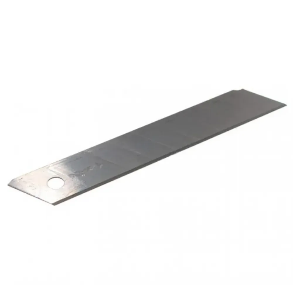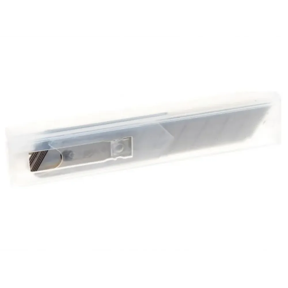 Сегментированное лезвие 10шт в упаковке. Зубрпредназначено для строительных ножей. С его помощью можно разрезать различные материалы: линолеум, ковровые покрытия, картон, бумагу, тонкий пластик и т.д. Лезвие изготовлено из улучшенной инструментальной стали У8А. Двойная заточка позволяет длительное время сохранять режущие свойства. На лезвии нанесены риски для ровного скалывания затупившихся сегментов.