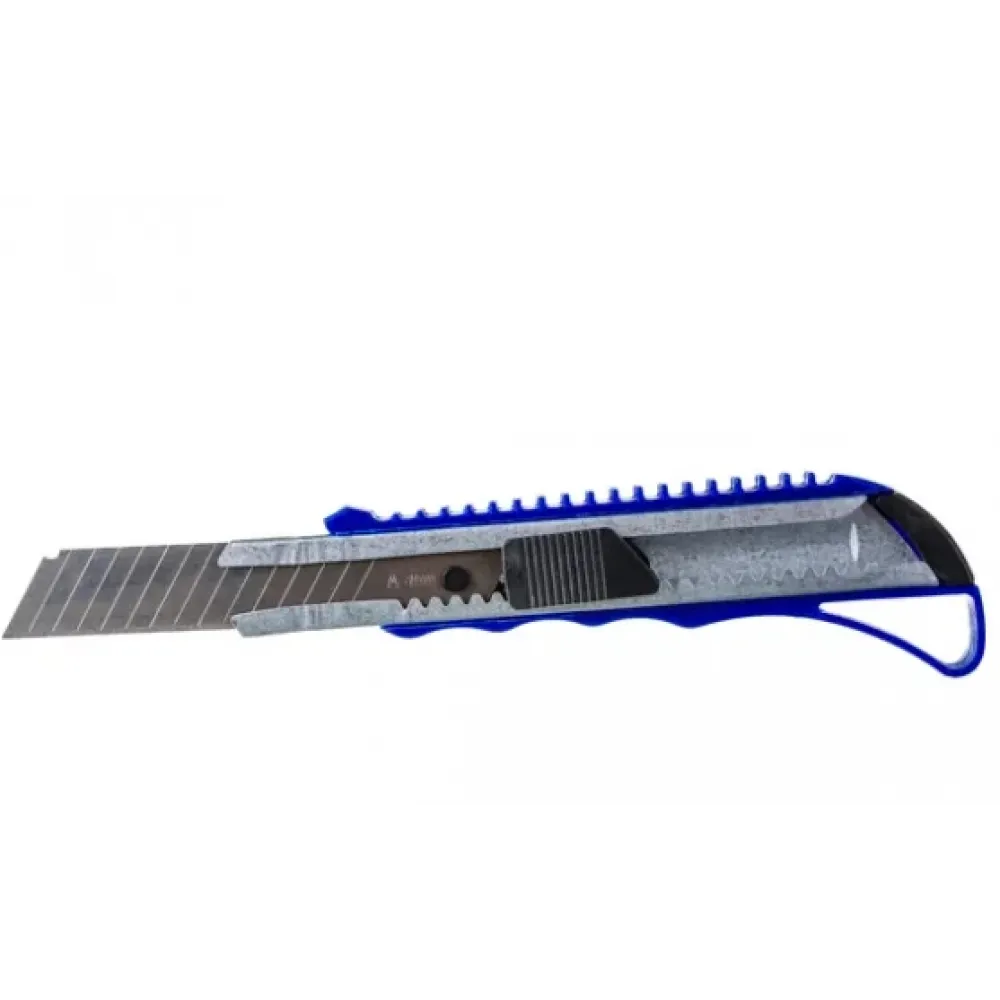 Лезвие -15 сегметов. Для резки различных материалов: Автофиксация лезвия. Материал: пластиковый корпус, усиленный металлической направляющей, лезвие из инструментальной стали. Упаковка: п/э пакет с картонным подвесом.