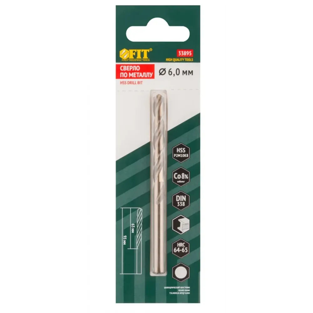Технические характеристики Сверло по металлу 6,0 х 93 мм FIT
